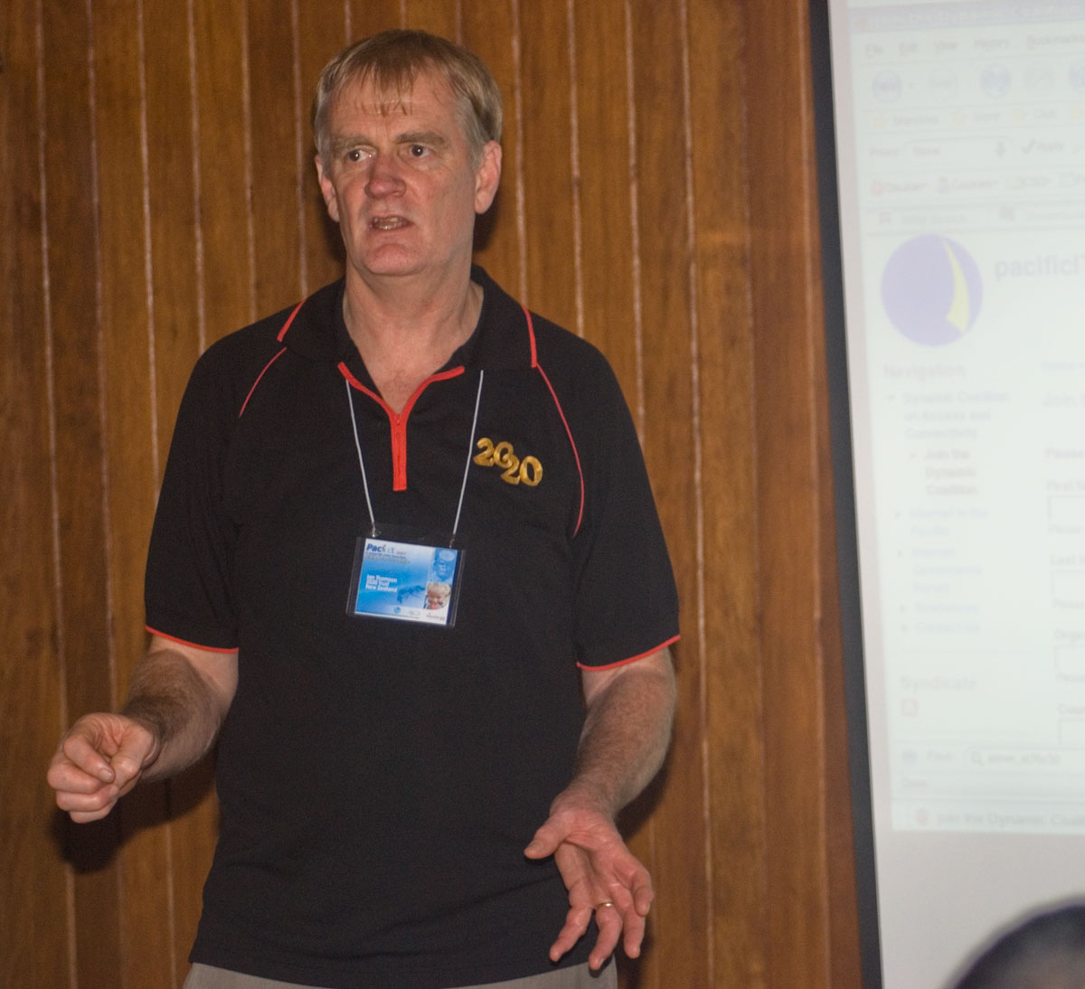 David Leeming introduces the XO laptop to PacINET attendees during a plenary